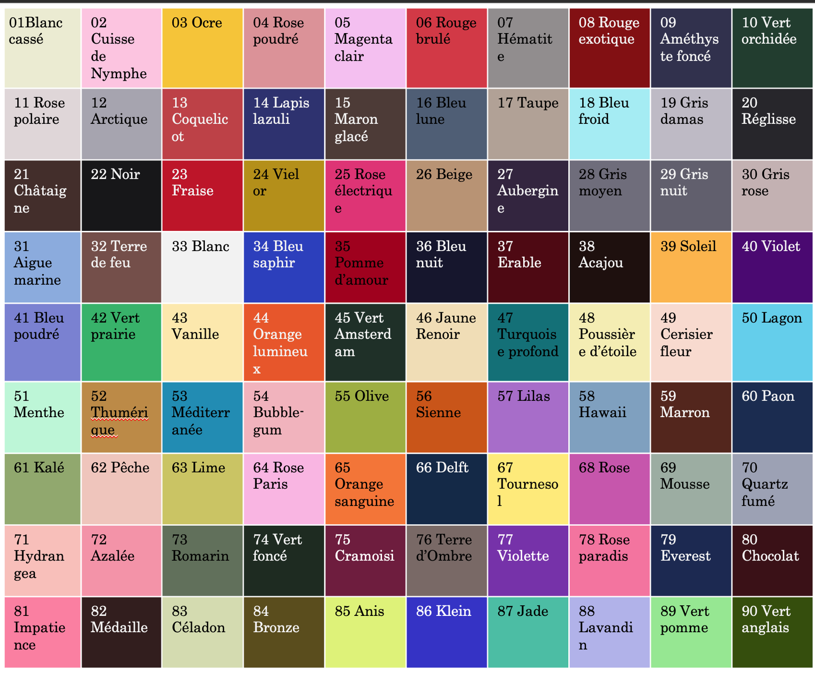 Une palette de 90 couleurs pour stimuler votre imagination